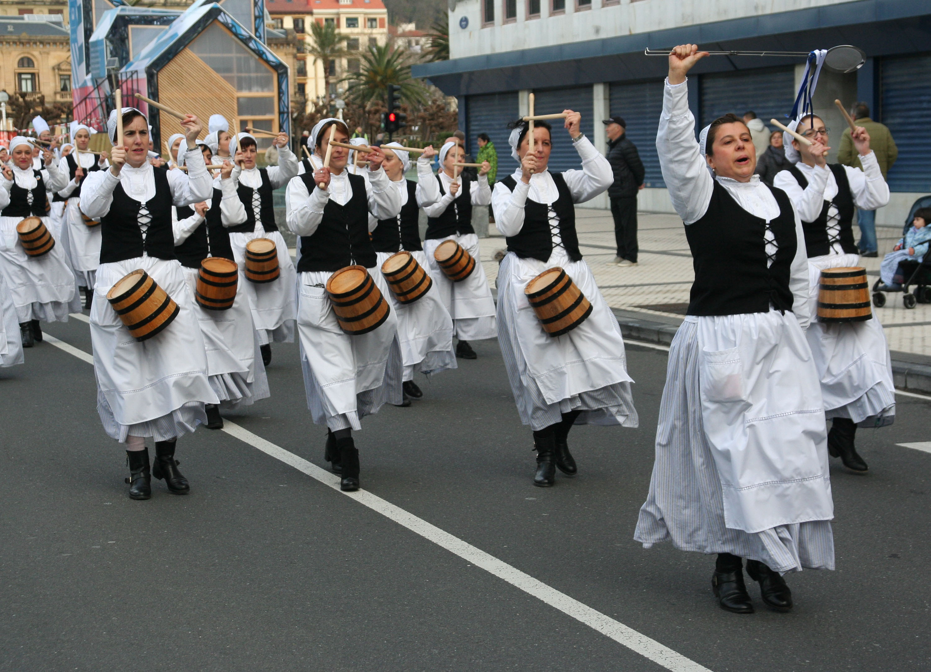 Seremos 71 tamborrreros, aguadores y barriles con Carlos Ruiz al frente, como Tambor Mayor, y Carmen Fernandez-Ferreiros como Cabo de Barriles de los cocineros y aguadoras, acompañados por la Txaranga Mauxitxa de Elgoibar, quienes recorramos la ciudad desde las 9 de la mañana hasta las 12 del mediodía con salida este año en la Plaza de Bilbao y final en la calle Garibay (en la sede de kutxabank)